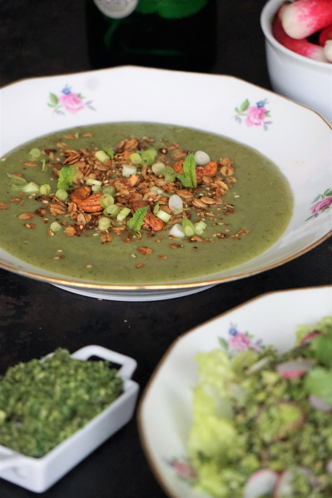 Dimanche 3 mai, je réalisais un atelier cuisine anti-gaspillage sur Intagram sur le radis et le brocoli. Anti gaspillage car nous avons tendance à jeter le pied de brocoli et les fanes de radis ; ils se retrouvent bien plus souvent à la poubelle que dans nos marmites, alors que c’est délicieux. Nous travaillerons donc le pied de brocoli dans un velouté avec une partie des fanes ainsi qu’une salade au pesto avec l’autre partie : taboulé de fleurs de brocolis, radis et pesto de fanes. Pour cet atelier, il est indispensable d’avoir un robot-mixeur pour réaliser le pesto et le taboulé